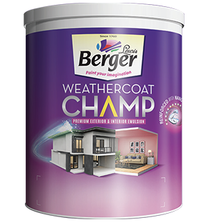 WeatherCoat Champ is a 100% acrylic water-based paint suitable for exterior & interior walls. It is reinforced with micro fibres which gives superior strength to the paint film. The paint provides soft sheen finish to the walls. It also comes with 5 years performance warranty.